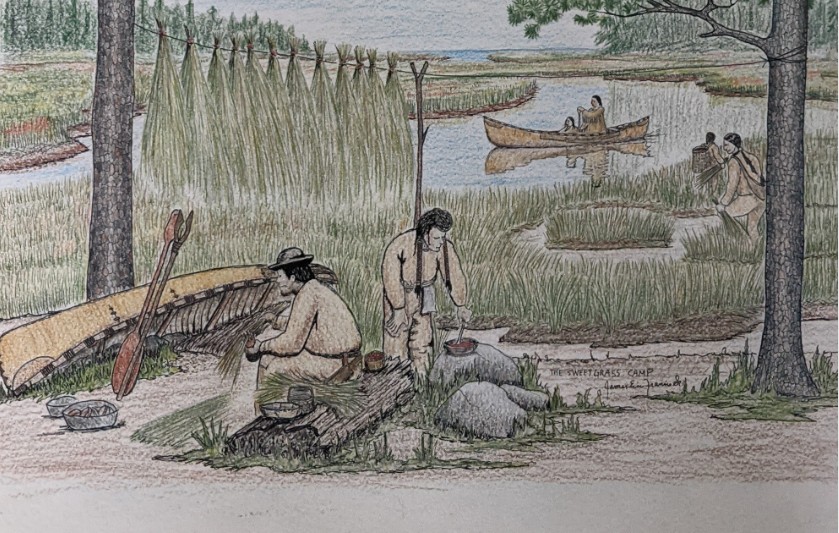 “The Wabanaki traveled to the island in birch bark canoes to hunt, fish, gather berries, harvest clams and basket-making resources like sweetgrass, and to trade with other Wabanakis. They camped near places like Somes Sound.”