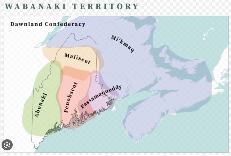 Through twelve or more millennia nations of the Wabanaki, or “People of the Dawnland” were the original caretakers of the land where the sun first touches North America*. Spread across present day Maine, New Brunswick and Nova Scotia the primary nations were the Maliseet, Micmac (Mi’kmaq), Passamaquoddy, Penobscot, and Abenaki peoples, with thousands of members maintaining distinct tribal governments, cultures, and languages.
